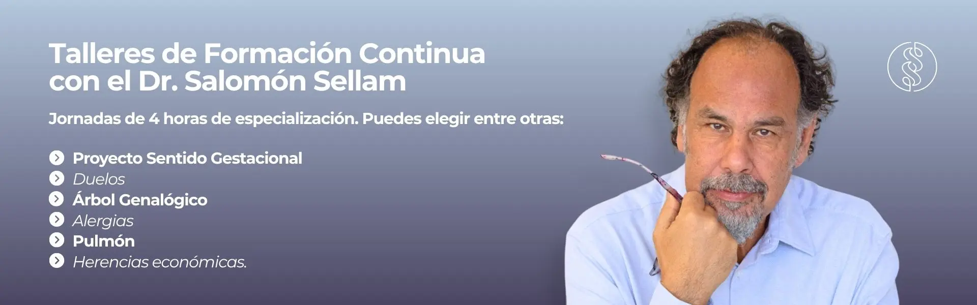 A través de talleres temáticos y específicos de 4 horas cada uno, se abordan contenidos teóricos y clínicos, surgidos de las investigaciones y actualizaciones permanentes del Dr. Salomón Sellam, que amplían y enriquecen el recorrido formativo.